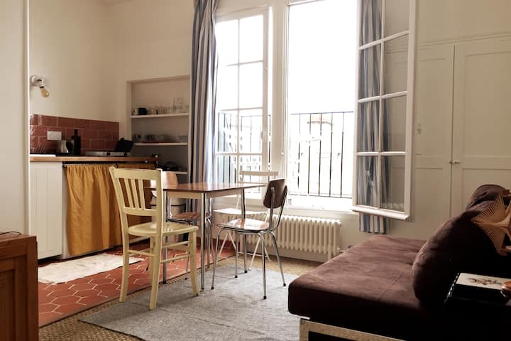 Wij zijn Charlotte en Thomas, leraar brieven en filosofie, Parijzenaars al twintig jaar, met een pauze in Dresden en Londen. We houden van Parijs en voeden onze twee jongens gelukkig op. We houden vooral van onze buurt, heel centraal, maar ook heel levendig. We zijn blij om musea of wandelingen aan te bevelen — we zijn er vooral dol op.
