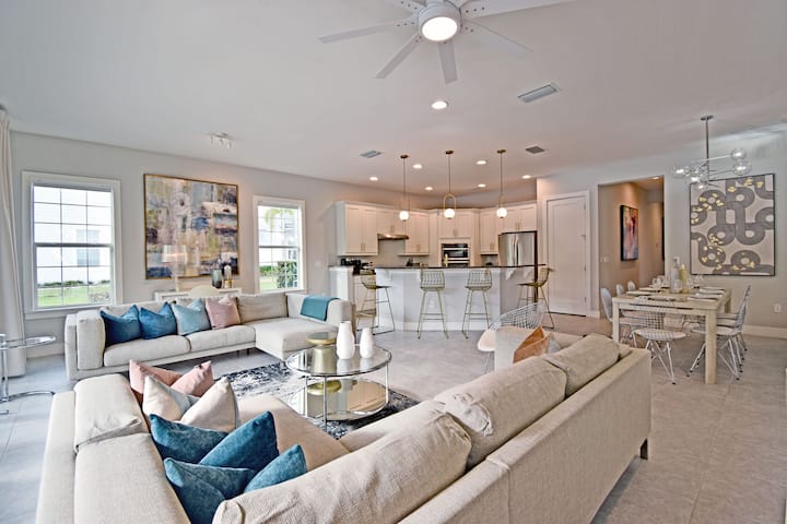 Dit alles is gelegen in het exclusieve 2300 hectare Reunion Resort met voorzieningen van wereldklasse, waaronder infinity-zwembaden, bubbelbaden (naast je eigen zwembad en bubbelbad), een full-service spa, tal van restaurants, waaronder het restaurant op het dak met uitzicht op het vuurwerk van Disney, en een volledig uitgeruste fitnessruimte. Houd er rekening mee dat deze woning geen toegang heeft tot bepaalde andere voorzieningen, zoals de golf greens, of het kleine waterpark op het terrein (lazy river met 1 glijbaan).