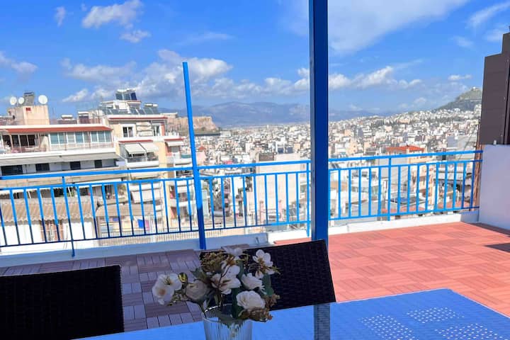 sky inn vrijstaand! Vier suites met eigen badkamer, geen gemeenschappelijke woonkamer, groot terras met uitzicht op de Akropolis