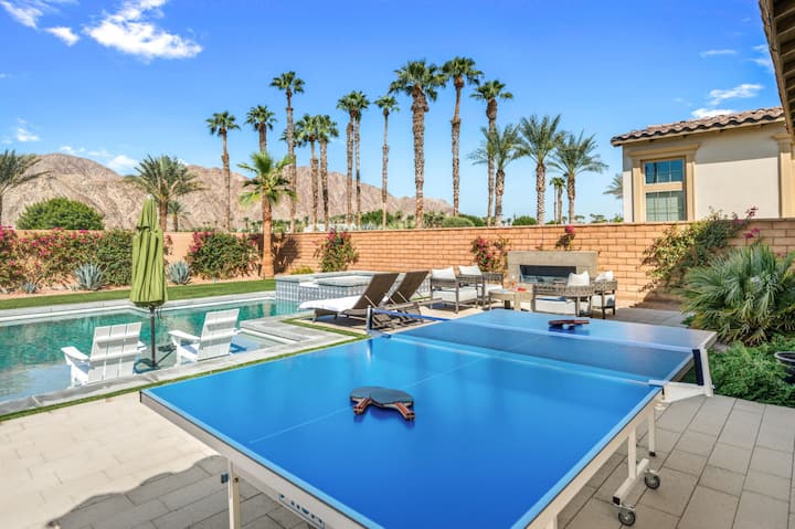 Ontspan in Casa Serena. Ons chique huis met 3 bedden/2,5 badkamers is gemaakt voor een luxueus maar comfortabel bezoek aan de woestijn. Je dagen kunnen worden doorgebracht met ontspannen in het eigen verwarmde zoutwaterzwembad/spa, het bijwonen van tennisevenementen of muziekfestivals, genieten van prachtige zonsondergangen, golfen op een van de nabijgelegen banen of de dag doorbrengen in een spa. De woning is nieuw gebouwd en gelegen in een omheinde Signature bij PGA West, en op slechts 2 minuten lopen van de stadionbaan en Ernie's Bar and Grill!