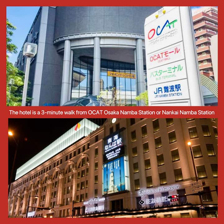 D1 [1 meter van uitgang 28 van station Nanba] 2-persoonskamer met een groot bed | Directe toegang tot Kansai Airport | Binnen wandelafstand van Shinsaibashi, Nihonbashi en Dotonbori | Chinees beschikbaar