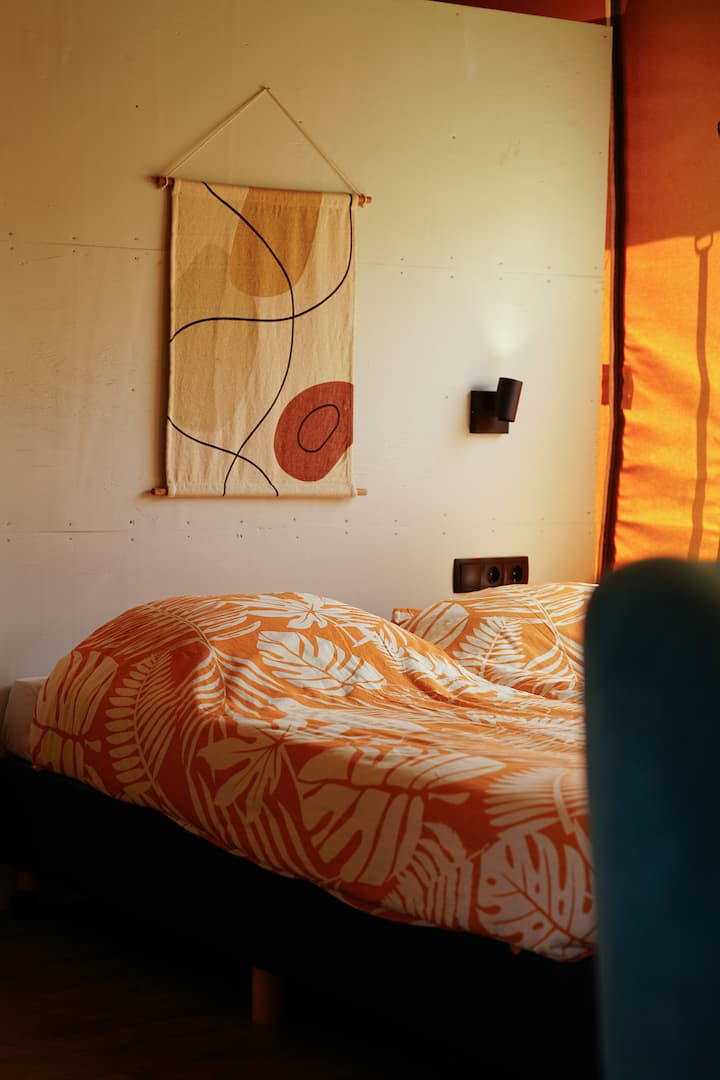 Ik ben Tessa en ik zorg met veel liefde voor deze plek en het terrein, dat ruim twee hectare groot is. Op de boerderij staan twee schaapshutten en twee lodgetenten, midden in het groen en omringd door het bos. Een fijne plek om even te vertragen en te genieten van rust, natuur en het buitenleven.