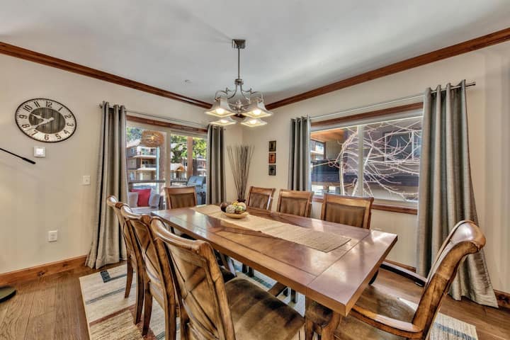 Welkom bij je Tahoe-uitje, ontworpen voor gezinnen, vrienden en onvergetelijke momenten. Dit omheinde, moderne appartement ligt perfect tussen het meer en de California-Nevada Stateline, waardoor je in het hart van alles zit wat South Lake Tahoe te bieden heeft. Wandel naar de Heavenly-gondel, wandel naar concerten aan het meer, ga dineren op je favoriete plek of breng de middag door met spetteren op Lakeside Beach — allemaal zonder ooit de auto nodig te hebben.