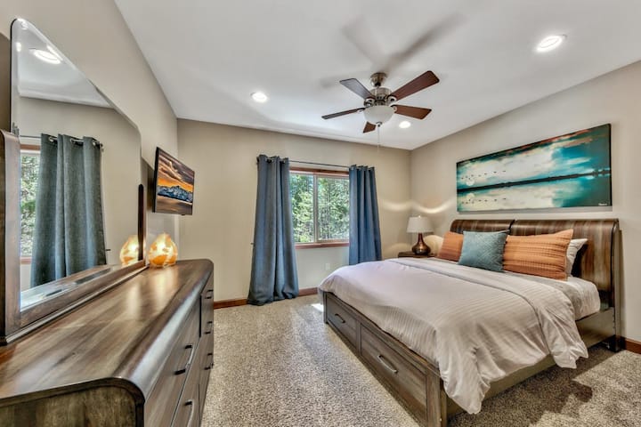 Tahoe Woods biedt een rustige, met bomen omzoomde omgeving in een omheinde gemeenschap, maar je bent op slechts een steenworp afstand van de winkels, eetgelegenheden, livemuziek en evenementen van Heavenly Village. Loop naar de gondel voor skien van wereldklasse in de winter of zomeractiviteiten zoals wandelen en ziplines. Bezienswaardigheden in de buurt zijn Lakeside Beach (toeslag vereist tijdens de zomer) en Marina voor paddleboarden, parasailing en bootverhuur, plus Edgewood Golf Course op minder dan anderhalve kilometer afstand. Casino's, Tahoe Blue Event Center, Lake Tahoe Outdoor Arena en Target liggen allemaal op loopafstand. Whole Foods ligt op slechts 1 mijl van Tahoe Woods, met verschillende andere lokale supermarkten en winkels op slechts een paar minuten afstand voor gemakkelijk, handig winkelen. Vervoer is eenvoudig met Lake Link, de gratis on-demand ritdienst van South Lake Tahoe.
