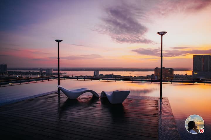 Gloednieuwe studio met 1 bed en infinity pool tot $ 24/N