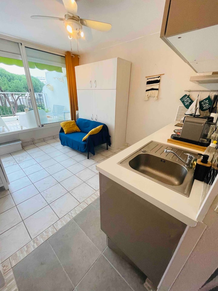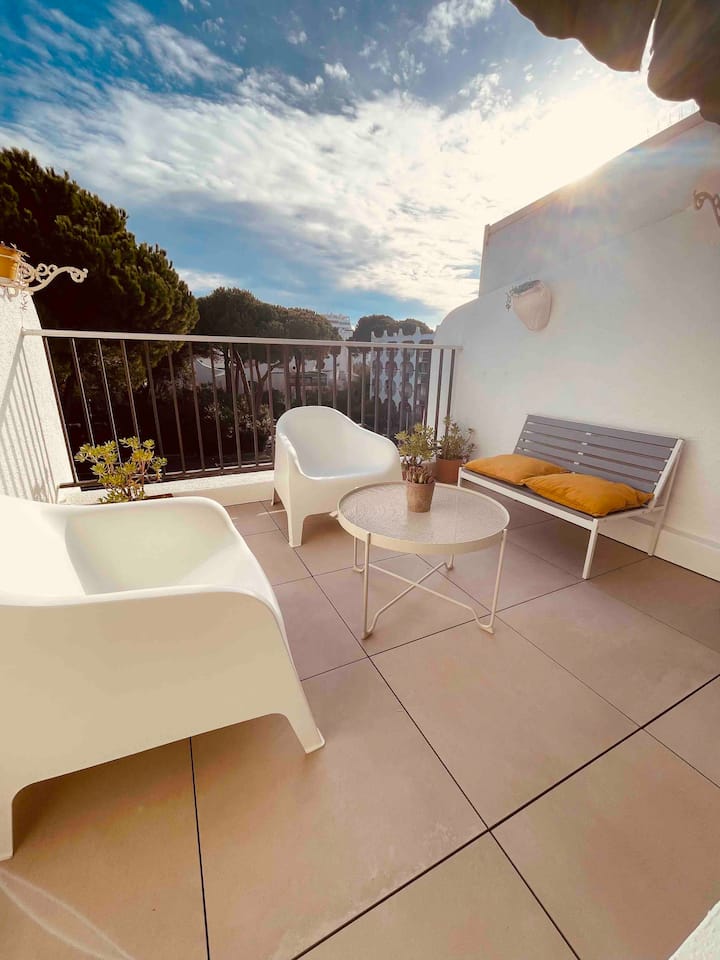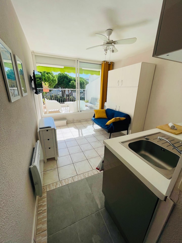 Studio terras aan het strand, stadscentrum, parkeerplaats