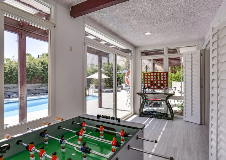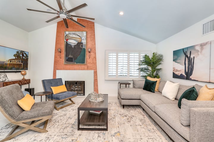 Welkom bij The Canyons. Geniet van een duik in het zwembad, ontspan in het bubbelbad of geniet van een maaltijd gekookt in de volledig gevulde keuken. Met ruime accommodaties, een tafelvoetbaltafel en een Tesla-oplader voor jouw gemak! Deze Palm Springs Oasis ligt op minder dan vijf minuten van het centrum van Palm Springs, geniet van restaurants, winkels en entertainment van wereldklasse terwijl je nog steeds de privacy hebt van een afgelegen toevluchtsoord. Boek nu en ervaar de perfecte mix van comfort en luxe bij The Canyons.