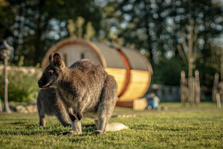 Glamping in het verwarmde kampeerhut op Leo's Farm