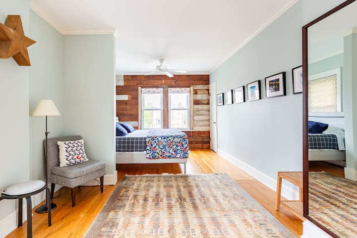 Vrolijk appartement met 2 slaapkamers in het centrum van Evanston met kingsize bed