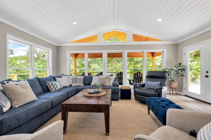 Dit huis heeft een prachtig schilderachtig uitzicht op het meer! Het is een gemakkelijke wandeling naar de haven, op een zacht glooiend trottoir. Boothelling op het terrein! Zet je boot handig in het huis!
