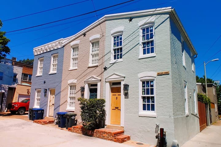 Echt charmant koetshuis met één slaapkamer op toplocatie drie blokken naar het Capitool. Loop naar de metro, talloze restaurants, de National Mall, winkels, parken Zeer weinig van deze bestaan nog. Huis met twee verdiepingen en één slaapkamer met eigen omheinde tuin /patio aan de achterkant. Een queensize bed in de slaapkamer en een uitschuifbare queensize bank in de woonkamer. Wasmachine en droger in de badkamer. Bakstenen muren, houten vloeren. Het adres is 310 Millers Court NE.