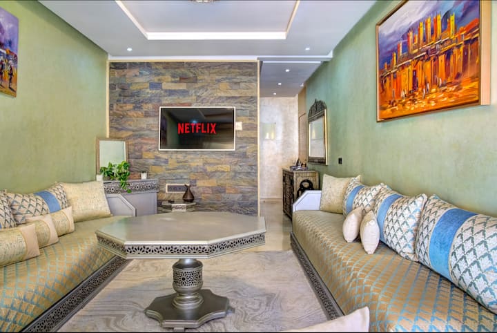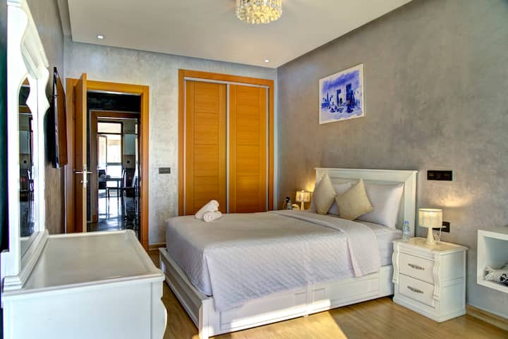 Ons appartement is te huur in het toeristische centrum van Agadir, op slechts 5 minuten van het strand. Het is gelegen in de prestigieuze residentie van Agadir Bay.