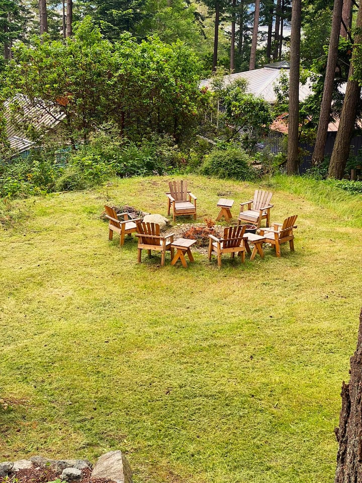 Gloednieuwe advertentie, vers ontworpen en ingericht om je het gevoel te geven dat je weg bent van huis en de beste herinneringen om te delen met familie en vrienden. Beginnend met ons geweldige bubbelbad, s'mores in onze vuurplaats, ontspannend voor de gezellige open haard of allemaal samen spelletjes spelen in de bonuskamer. Zoveel geweldige dingen om te doen voordat je zelfs Orcas Island hebt verkend.