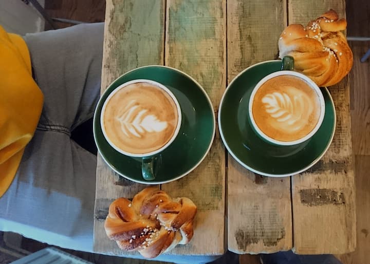 Mijn ontbijt: Vers gebakken zuurdesembrood en vers gezette espresso
