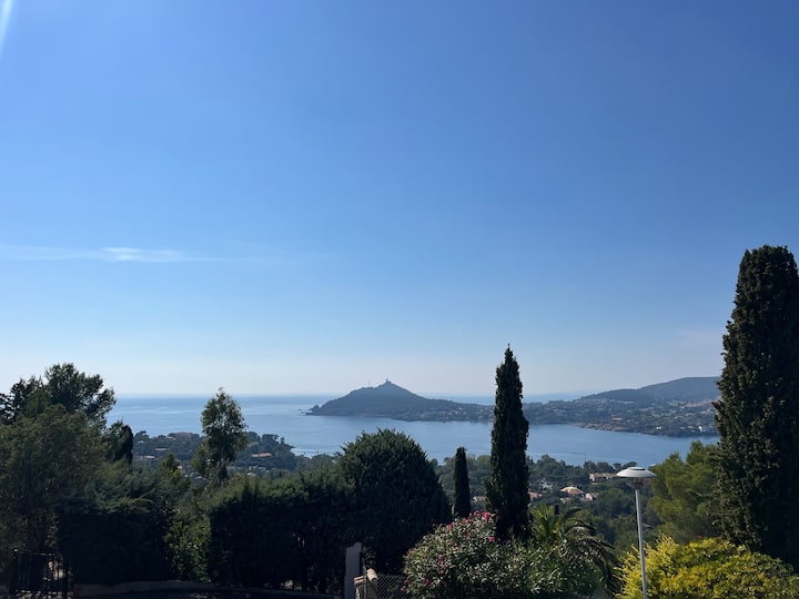 Huis met uitzicht op zee aan de Côte d 'Azur, strand op loopafstand