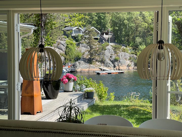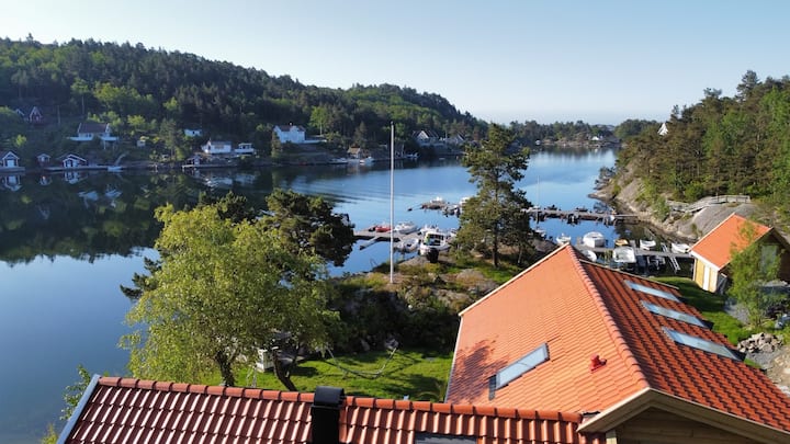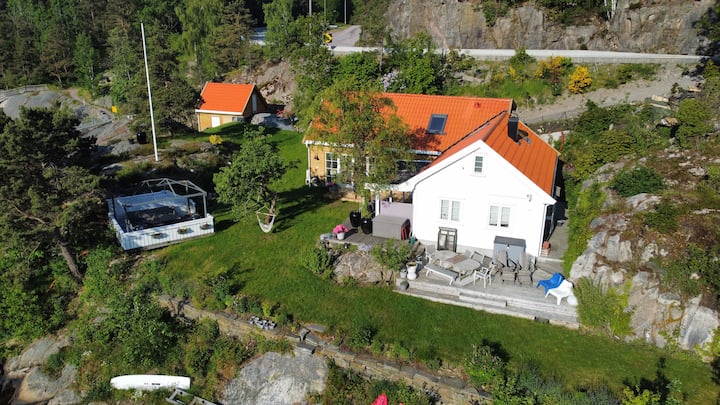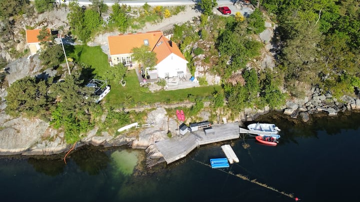 Sørlandsidyll voor uitgebreide familie-, boot- en waterglijbaan