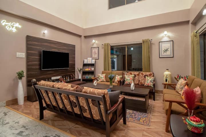 Een prachtig huis omgeven te midden van de mistige bries en verbazingwekkende landschappen, garandeert dit huis een verjongend uitje. Binnen de accommodatie kunnen gasten hun dag beginnen met een uitgebreid gratis ontbijt. Maak een stevige ochtendwandeling op het gazon en neem een duik in de verfrissende lucht. Kruip lekker weg met een boek in het prieel, dat een prachtig uitzicht belooft. Speel binnen spelletjes zoals kaarten en ludo met je dierbaren. Ga mee op een rondleiding door een theeplantage, pluk theebladeren en leer alles over de productieprocessen. Geniet van de beroemde verscheidenheid aan thee tijdens de masterclass theeproeverij. Wandel door de buurt en verken nabijgelegen wandelingen en paden. Geniet overdag van vogels kijken en 's nachts van sterren kijken. Er staat een telescoop tot je beschikking. De avonden kunnen worden gereserveerd voor een onvergetelijke kampvuurnacht te midden van de bergen. Ga naar huis met een zak vol herinneringen.