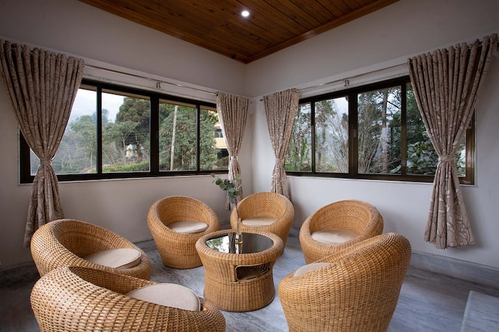 De knusse binnenruimtes staan in sterk contrast met de uitgestrekte buitenkant. Met groene tuinen, gazons en prieeltjes biedt elke kamer hier een even betoverend uitzicht op het landgoed en de iconische berg Kanchenjunga. Zorg er hier voor dat je de begeleide plantagetour ervaart, woon de masterclass voor theeproeverij bij, trek naar de erfgoedbezienswaardigheid van de waterkrachtcentrale van Sidrapong (de eerste waterkrachtcentrale van Azië) en neem een van 's werelds beste en internationaal geprezen bekroonde bio-organische thee mee naar huis voor je dierbaren!