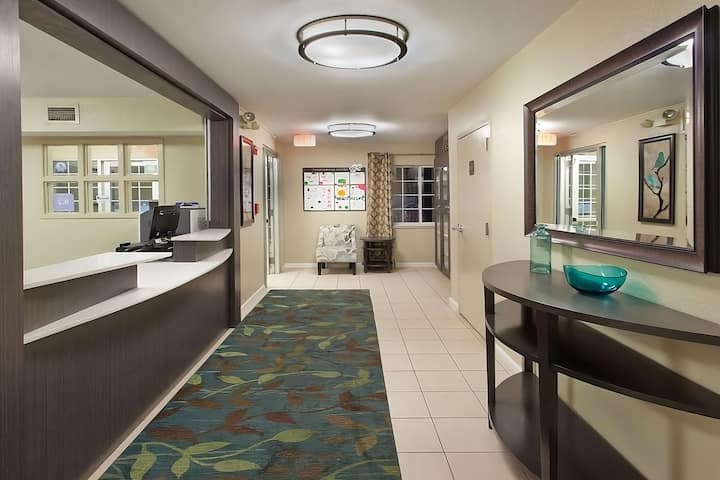 Deze all-suite accommodatie is ontworpen met zowel zakenreizigers als vakantiegangers in gedachten. Elke ruime suite heeft een volledig uitgeruste keuken, een comfortabele woonkamer en een speciale werkruimte. Blijf verbonden met gratis wifi en geniet van toegang tot het 24-uursfitnesscentrum. Gasten kunnen ook gebruikmaken van het buitenpaviljoen en de grillruimte voor een diner in de buitenlucht of om gezellig samen te zijn. Gebruik de wasfaciliteiten voor gasten voor je eigen gemak. Het hotel biedt ook een barbecueplek in de buitenlucht en een goed gevulde bibliotheek voor vermaak.