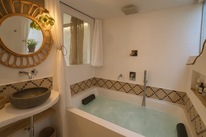Mooi appartement, ruim, met grote ramen en een prachtig uitzicht op de Tietar-vallei en het dorp. Je bent op slechts 3 minuten van het centrum van Villanueva De la Vera, maar weg van de drukte van het centrum. Alles is hier zo ontworpen dat je 'Atalantar' kunt, wat de geboorteplaats is die we gebruiken om uit te drukken dat we 'in ons centrum' zijn. Een ontspannend bad met etherische lavendelolie in je dubbele whirlpool kan een goede start zijn om aan de slag te gaan in Atalantar