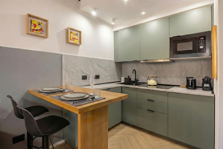 De toegang tot het appartement is onafhankelijk en gasten kunnen vrij genieten van alle diensten binnen, in totale privacy. Het gebouw is erg oud en heeft geen lift. De trappen van het appartement zijn vrij smal en steil, niet geschikt voor zeer oude mensen of mensen met mobiliteitsproblemen.