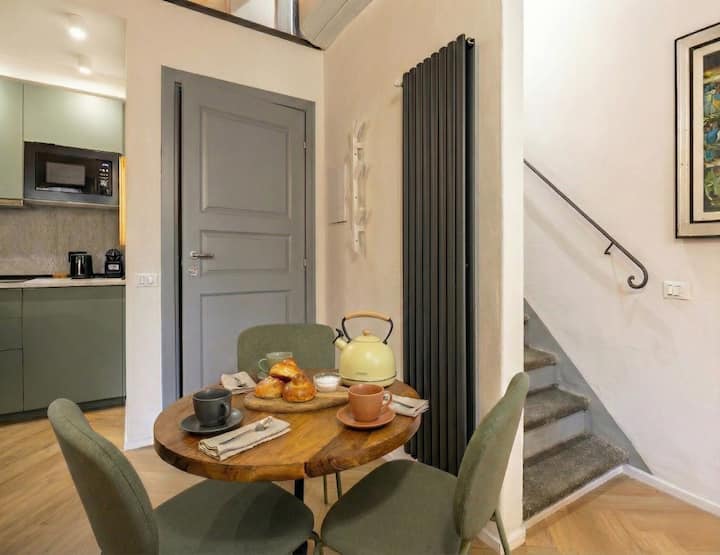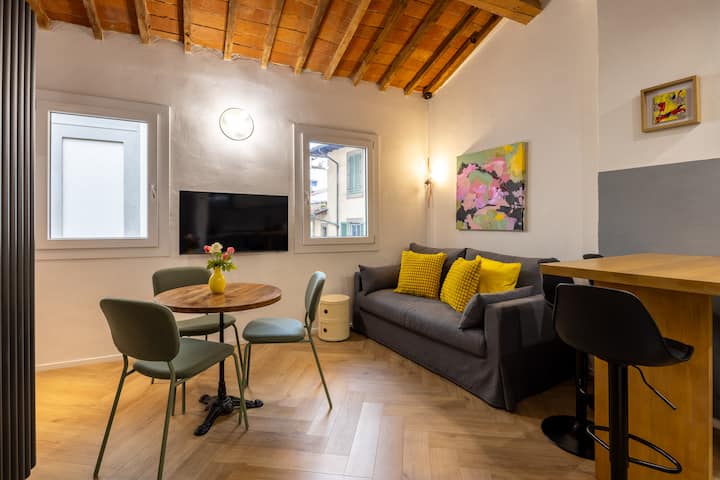 Charmant appartement op twee verdiepingen in het hart van Florence, in een historisch gebouw uit de veertiende eeuw met 'rijtjeshuizen' typologie. Onlangs gerenoveerd, combineert het originele elementen zoals balken en zichtbare stenen met een modern en verfijnd ontwerp. Ideaal voor een stel of voor maximaal drie personen, het is voorzien van alle gemakken. Op een paar stappen van de Duomo en Uffizi, in een authentieke en levendige omgeving, met alle diensten en belangrijkste bezienswaardigheden op loopafstand.