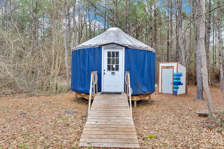 Welkom bij de Nautical Yurt at River Bark Retreat - een rustige, huisdiervriendelijke glamping-ervaring op meer dan 35 hectare privé-bossen en open land in Bogalusa, Louisiana.