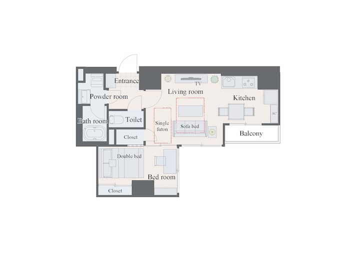 Mondomio208- Ongeveer 2 km van Sapporo Odori, 4 minuten lopen van het station