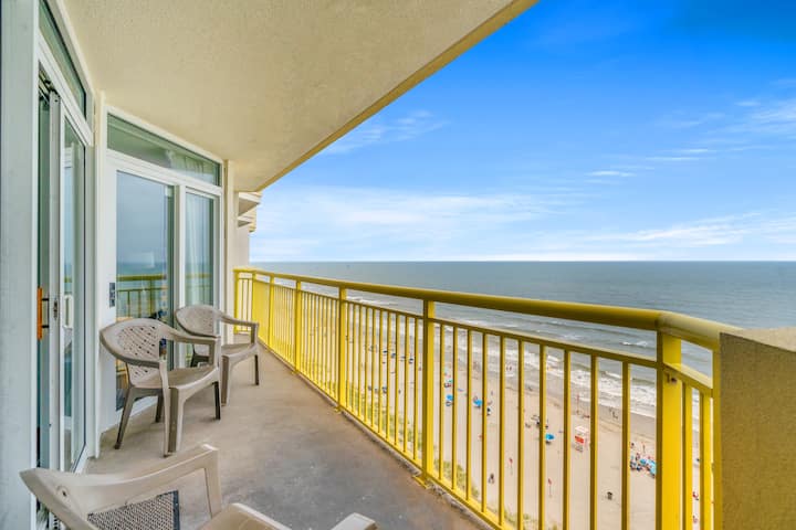 Kom koninklijk wonen in het appartement aan de oceaan, Bay Watch Resort Towers I 1405, waar je je voeten kunt neerzetten en op elk moment kunt ontspannen op het prachtige balkon aan de oceaan, genietend van het uitzicht op de oceaan, blauwe luchten en 60 mijl breed zandstrand.