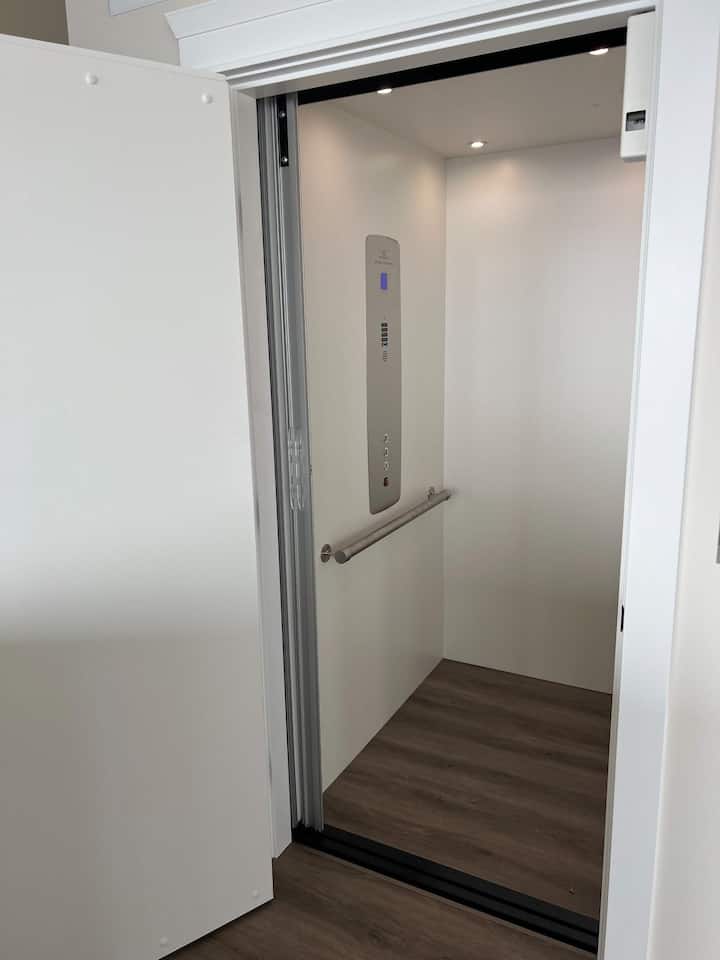 Deze duplex is verdeeld over vier verdiepingen, maar heeft een lift voor gemakkelijke toegang tot de hoofd- en bovenste verdiepingen.
