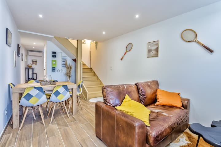 Een herenhuis van 90 m² volledig gerenoveerd, op twee niveaus die als volgt zijn samengesteld: