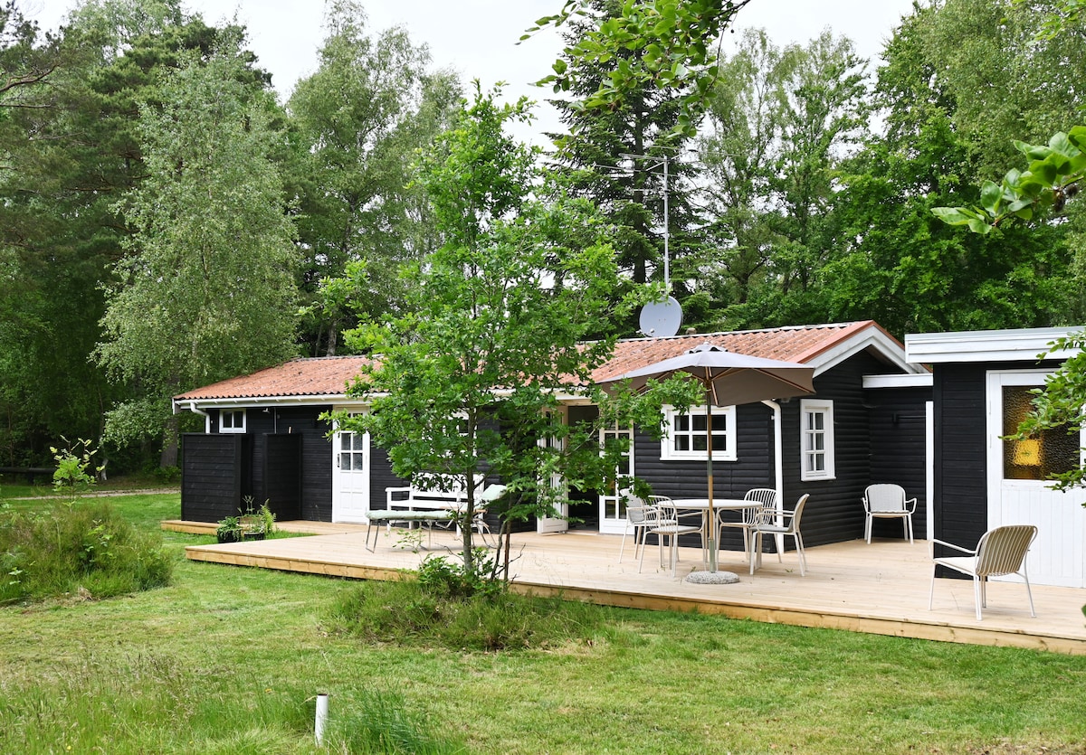 Kjelds house is a small recently renovated resort with dining kitchen, wood stove, living room and niche with a double bed. A modern flush toilet, outdoor bath house, bunk room with 2 beds have separate entrances. There are free bikes available and a large terrace with nice shelter connects all buildings. At the edge of a clearing on the large forest and wilderness plot is a small campfire site. Here you can enjoy the sunset and with a little luck see deer and birds of prey.