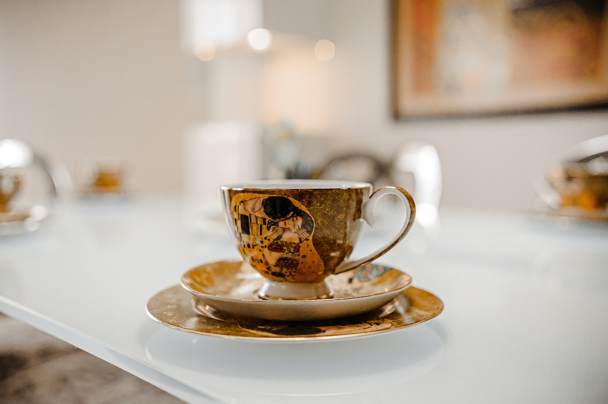 Wake up to sunrise views in a designer 2-bed flat steps from Kaufland & cafés. 2 bedrooms + sofa bed sleep 6 in hotel-grade linens. Cook with a chef-ready kitchen, unwind with Netflix & 300 Mbps Wi-Fi, or stroll a car-free courtyard & playground. Self check-in, AC in every room, washer/dryer & free street parking. Perfect for families, work trips or long stays.