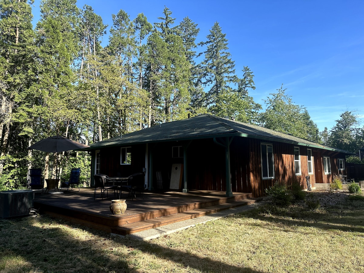 Minutes from several award-winning wineries and local fishing holes, the Umpqua Valley Garden Getaway has all the amenities you will need for a memorable vacation. Down a cobblestone stairway, you will find a pristinely redesigned cottage nestled in a private backyard garden. Start your day with a hot cup of coffee from the wicker chairs overlooking the backyard and end your day dining al fresco as string lights dangle above a cozy corner of the deck.