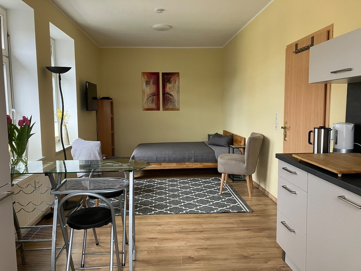 Welkom in ons liefdevol gerenoveerde Gründerzeithaus in het zuidoosten van Leipzig/Stötteritz. Het huis is in de afgelopen 10 jaar met de hand gerestaureerd van de kelder tot de bovenkant van het dak. Het appartement op de begane grond heeft je ingang via de gang vanaf de straat en biedt een slaapkamer en een keuken-woonkamer voor 2 gasten.