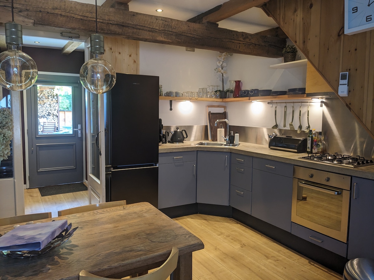 Sfeervol huisje in de tuin. Scandinavisch ingericht met keuken, badkamer, eethoek en genoeg ruimte om te spelen voor de kinderen. Boven twee slaapkamers onder een schuin dak, voorzien van eigen wasbak en spiegel, en een lief klein kamertje met een commode en ledikantje. In de kelder een barretje, voetbaltafel en bank met televisie. Buiten een ruime tuin met speelhuisje en trampoline. NIEUW houtgestookte hottub in de tuin. LET OP: hout aanwezig voor 1x hottub warm stoken. NESPRESSO KOFFIE