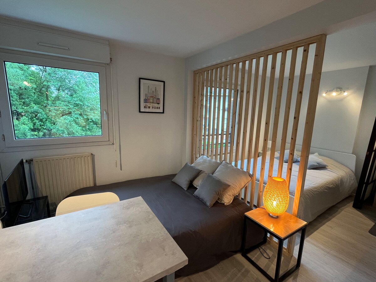 🌳In een rustige en beveiligde residentie met toegang tot de badge, ontdek deze prachtige T2 gelegen in Lesquin (5 minuten van Lille met de auto). 🌸Ideaal voor je vakantie of zakenreizen met directe toegang tot Lille dankzij het openbaar vervoer. In een cocooning-geest kun🥰 je genieten van een nieuw en licht appartement met een slaapkamer, woonkamer, badkamer en tuin. Je hebt parkeergelegenheid als een fietsgarage. 🌟Ter informatie: kluisje in Vendeville