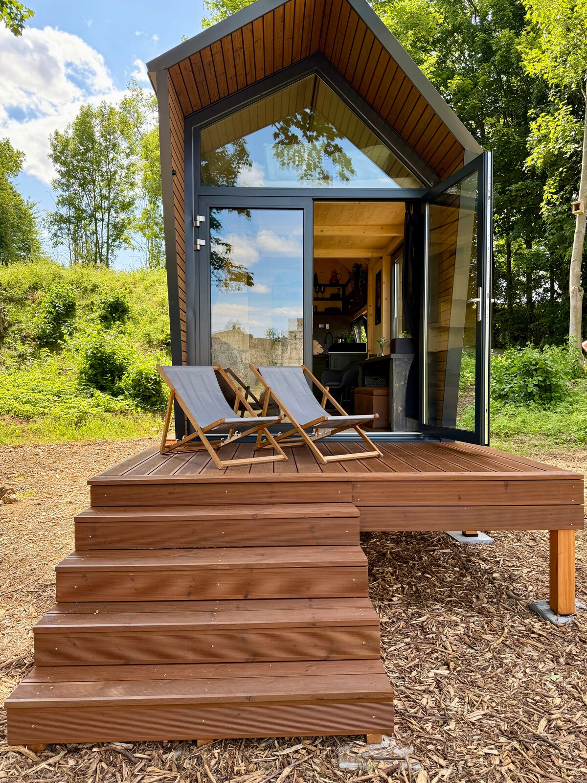 Útulná rybářská chatka u lesa a rybníka, kde čas plyne pomaleji. Ráno si užijete klidnou snídani na terase, projížďku na loďce, během dne se osvěžíte pod solární sprchou a odpočinete si v hamace s výhledem na západ slunce. Večer vás zahřeje praskající krb nebo ohniště pod širým nebem, zatímco nad hlavou tiše poletují netopýři. Ideální místo pro chvíle ticha a útěk do přírody.