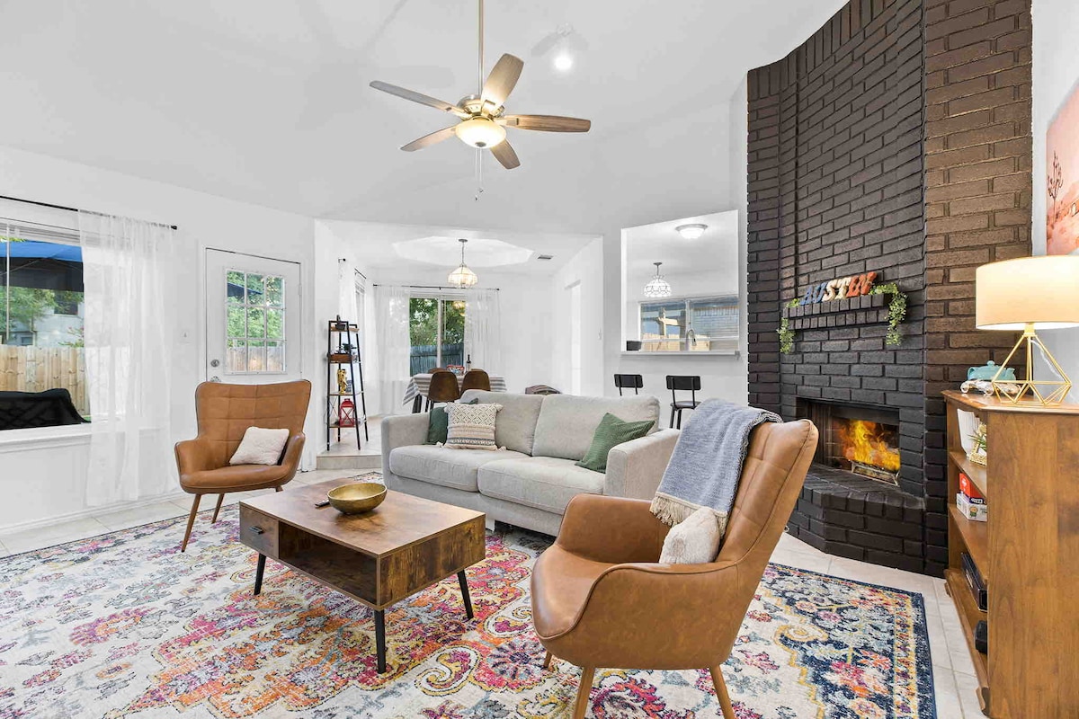 Onlangs opgewaardeerd met Wide Plank Wood Vinyl vloeren en plinten. Verse verf bij de keuken en badkamers die in 2022 zijn bijgewerkt Twee grote slaapkamers 2 Kings! , 2 queensize bedden, een opblaasmatras. zachte lakens, zachte kussens en handdoeken. Internet, wasmachine/droger Klein treed Park aan de overkant van de straat Gevulde keuken om te koken. Tal van paden en een koffiebar om naar toe te wandelen. GEEN feesthuis , geweldig om uit te rusten en te ontspannen na je avonturen. 30 minuten van het centrum van Austin