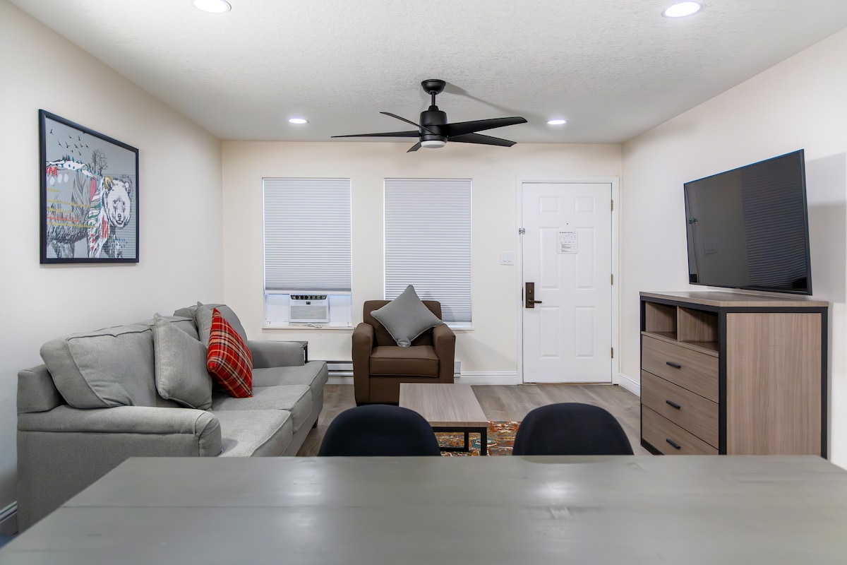 Dit chique appartement met één slaapkamer heeft alle voorzieningen van een high-end resort. Skiërs genieten van de gondel van Trailhead Lodge, die direct de deur uit is, brengt je naar de resortbasis. Er is een biljartkamer, een verwarmd buitenzwembad en drie bubbelbaden in grotstijl, een fitnessruimte, voldoende spahanddoeken bij de receptie, zachte gewaden in de accommodatie, een volledig uitgeruste keuken met granieten aanrechten en ss-apparatuur, een buitengrillruimte, een verwarmde binnengarage, enz.