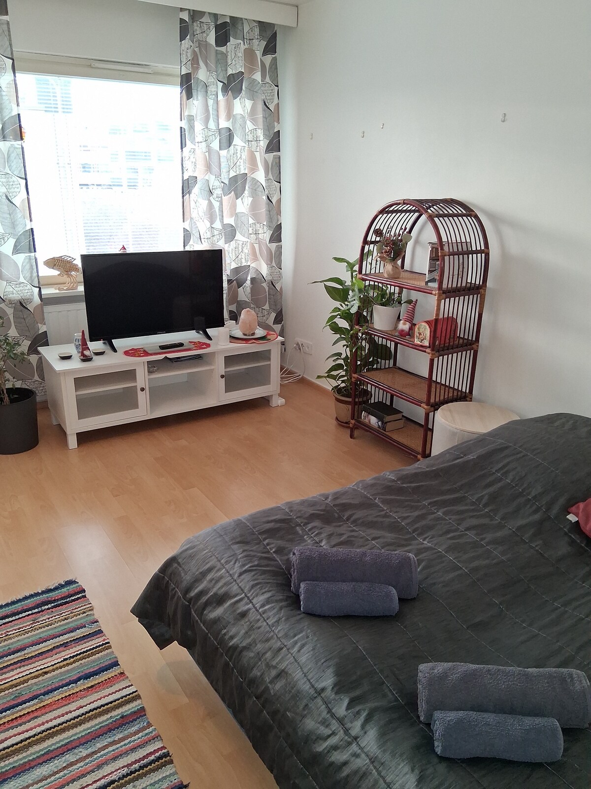 Modern studio appartement (grote kamer, alkoof, keuken, badkamer) in gloednieuw gebouw gelegen in het centrum van Rovaniemi. Alle diensten (winkelcentrum, Korundi, Arktikum, bushalte naar Santas Village, restaurants) op enkele minuten loopafstand. Beddengoed en handdoeken zijn inbegrepen. Best met twee personen, maar is geschikt voor vier personen. Een tweepersoonsbed van 140 cm en een slaapbank. Volledig uitgeruste keuken. Douche, balkon, gratis wifi.