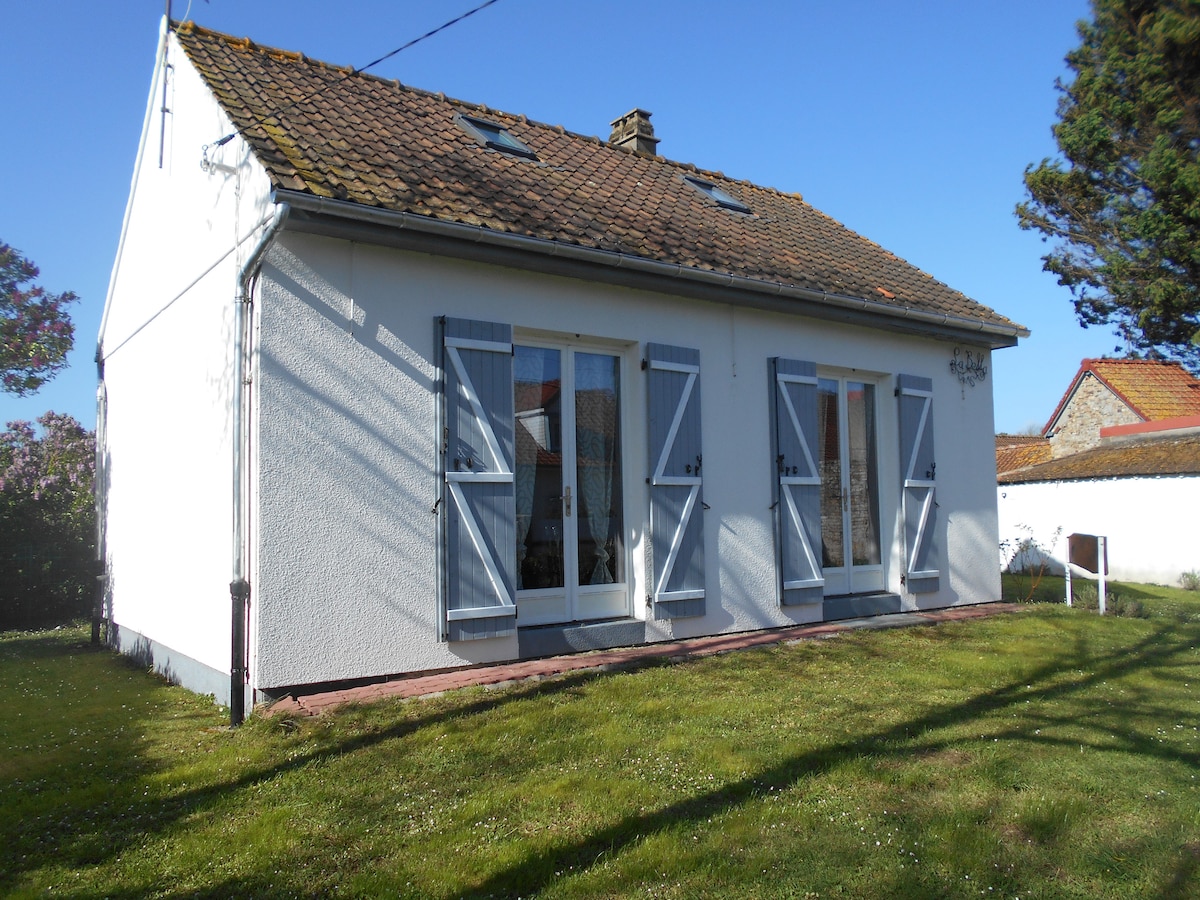 Bij de uitgang van CROTOY, charmant huis van 70m2, niet aangrenzend, inclusief ingerichte keuken; eetkamer; woonkamer met slaapbank, tv; 2 slaapkamers of 5 bedden; badkamer met bad.... apart toilet....Land van 400m2 met tuinmeubelen ,barbecue, zonnen... naast het fietspad... Wild strand op 1500m....Rustig!!!! Parc du Marquenterre op 3kms... Lakens en handdoeken niet inbegrepen. Schoonmaken moet worden gedaan als je weggaat. Onze huisdieren zijn niet toegestaan.