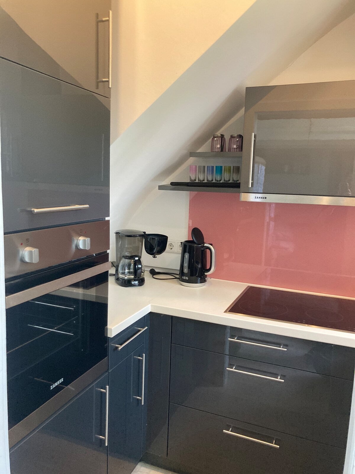 Eine sehr zentral gelegene Einliegerwohnung ca.55 qm, mit separatem Eingang. Die Wohnung hat zwei abschließbare Schlafräume mit elektrischen Aussenrollos, eine offene Wohnküche mit Schlafcouch und ein Badezimmer. Die Küche mit Induktionsherd ist vollständig eingerichtet. Ideal zum kochen, wohnen und entspannen. Auch eine Terrasse ist vom Wohnzimmer ebenerdig angelegt. Parkmöglichkeiten gibt es direkt auf dem eigenen Parkplatz vor dem Eingang. Weitere Parkplätze gibt es entlang der Straße.