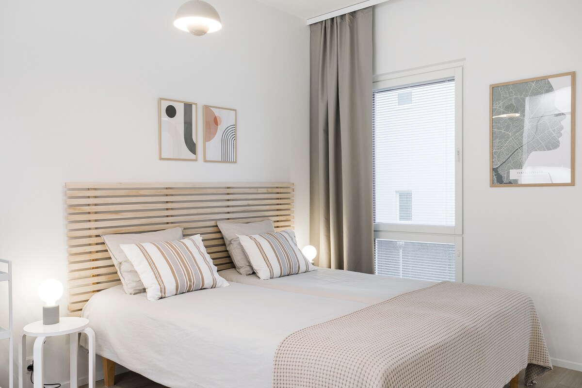 Stylish, bright apartment in a totally new building (completed in November 2023). Livingroom-kitchen, bedroom, bathroom. A double bed (160 x 200 cm) and a pullout sofabed (140 x 200 cm). High comfort: Floor heating, air conditioning, good sound isolation Central: 1 block from the bus station, just a few blocks from the train station and market square Flexible check-in hours