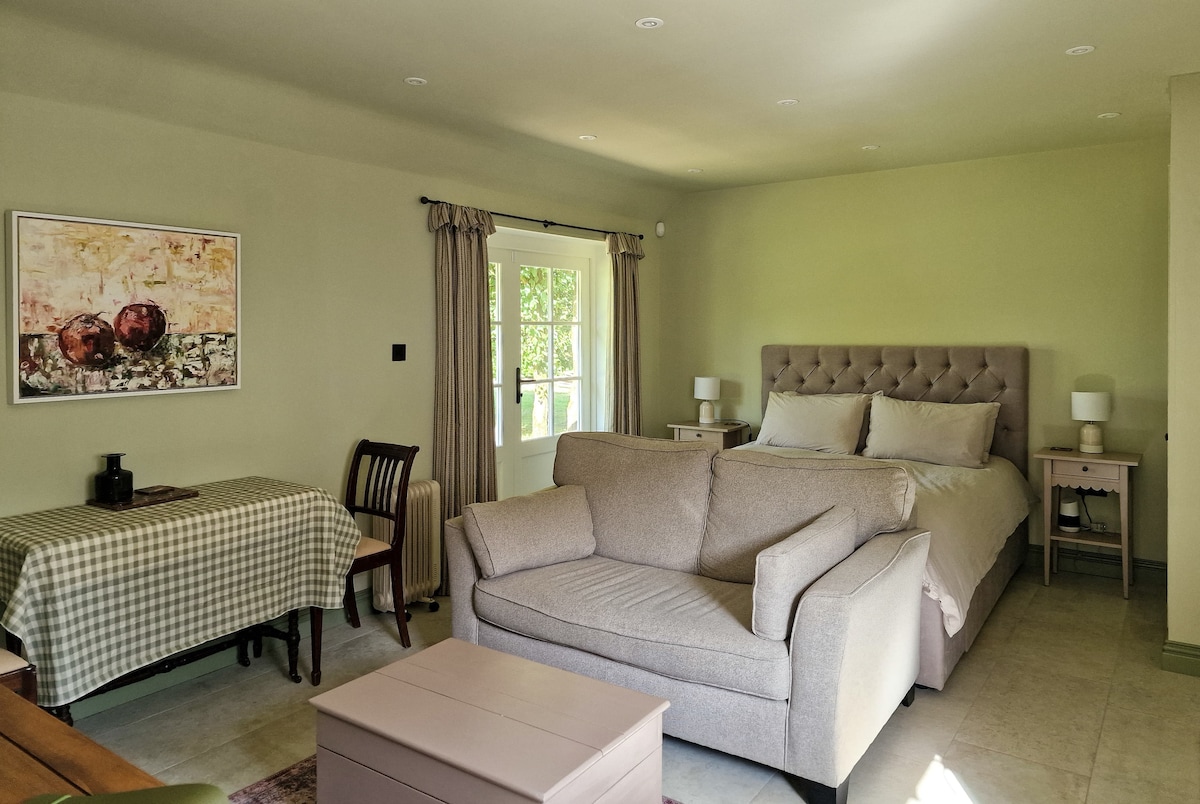This is a very cosy self contained annex, consisting of a double bedroom with ensuite. There is a kettle, mini fridge, toaster and microwave, but no other cooking facilities. One towel per person is supplied. Fresh croissants and home made jam included and brought to your door in the mornings on certain days of the week. This does rather depend on what time I have to go out in the morning, but often we can agree on a time. Please do enquire.