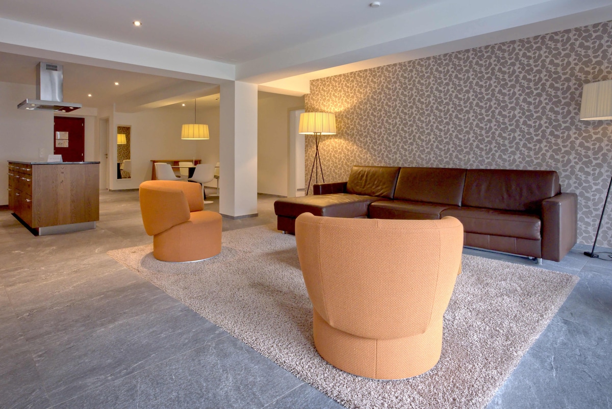Kamer met ruim terras. Keuken: Volledig uitgeruste keuken met vaatwasser, kookplaat, magnetron, oven en koffiezetapparaat. Drankjes zijn gratis voor u beschikbaar. - Woonkamer: slaapbank. Gratis wifi, grote smart-tv Badkamer: Ruim toilet met douche en grote spiegel. - Verlichting: sfeervolle ledverlichting De kamer biedt je de perfecte combinatie van comfort en ontspanning in je eigen stijl. Ideaal voor koppels (+ kind), solo-reizigers of zakenmensen