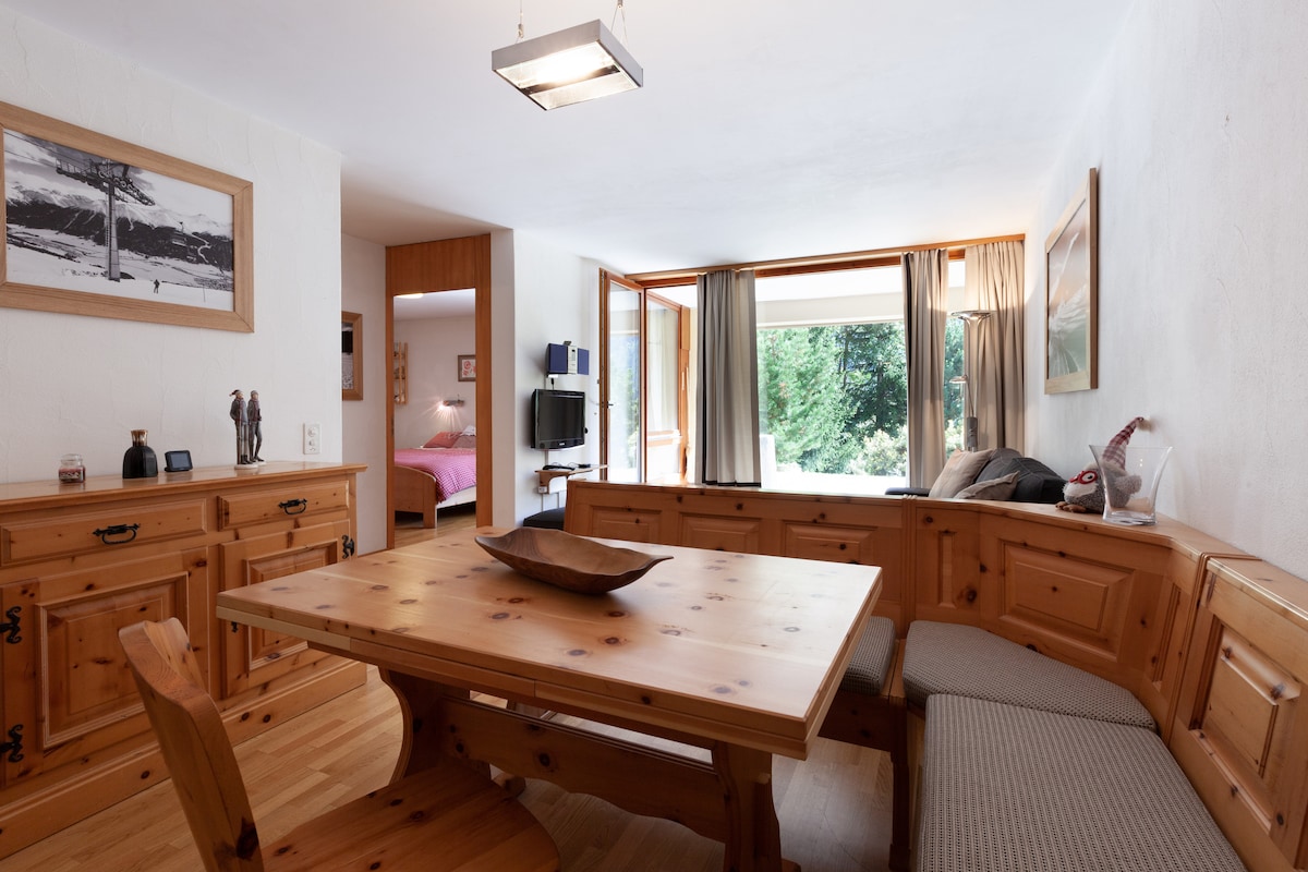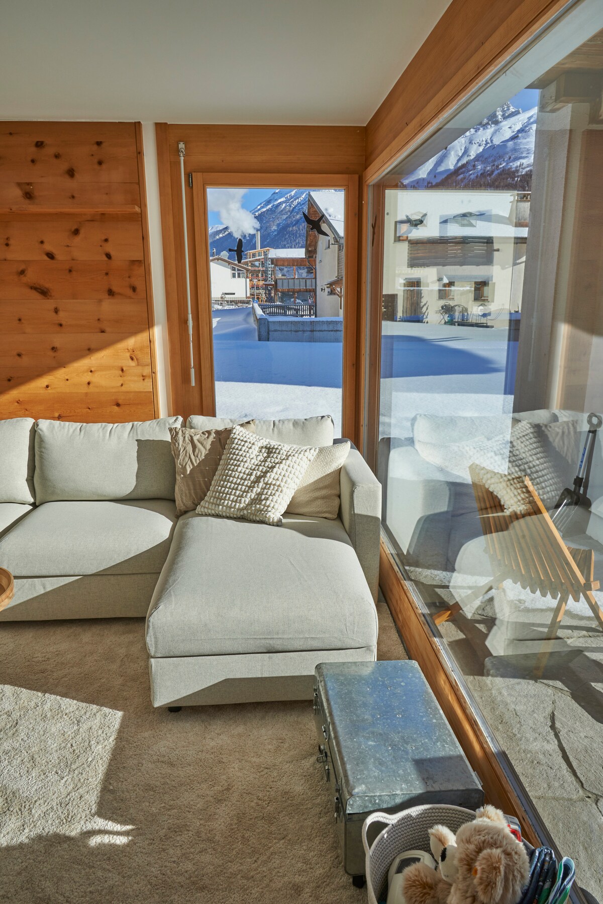 Arvenduft vleit je zodra je het studio-appartement betreedt. Uniek ingericht met aandacht voor detail. Handgesneden houten bekleding. Handgesneden stapelbedden in volwassen formaat (90 x 190 cm). Muur bedekt met kasjmier. Grote bank, eethoek en open keuken. Moderne badkamer met douche. Vrij uitzicht op de bergen van Oberengadin tot Zuoz.