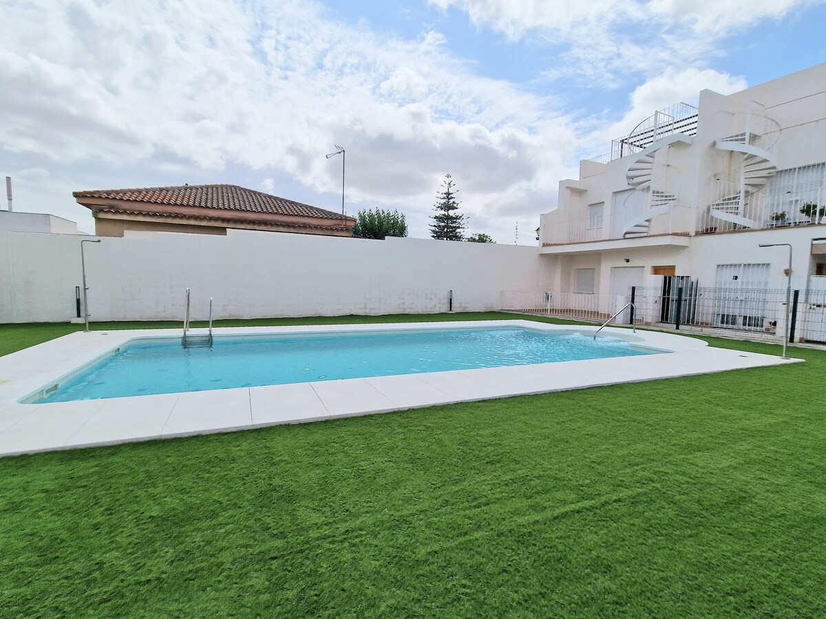 PRIVÉ ZWEMBAD (het hele jaar beschikbaar) Ideale accommodatie voor rust en ontspanning in het gezelschap van familie en vrienden, het beoefenen van allerlei activiteiten in de natuur zoals (wandelroutes, fietsen etc.)... Dicht bij zowel Ribera als Pinar liggen. Een rustige en goed bereikbare omgeving. ZWEMBAD omringd door 200 m2 gras.