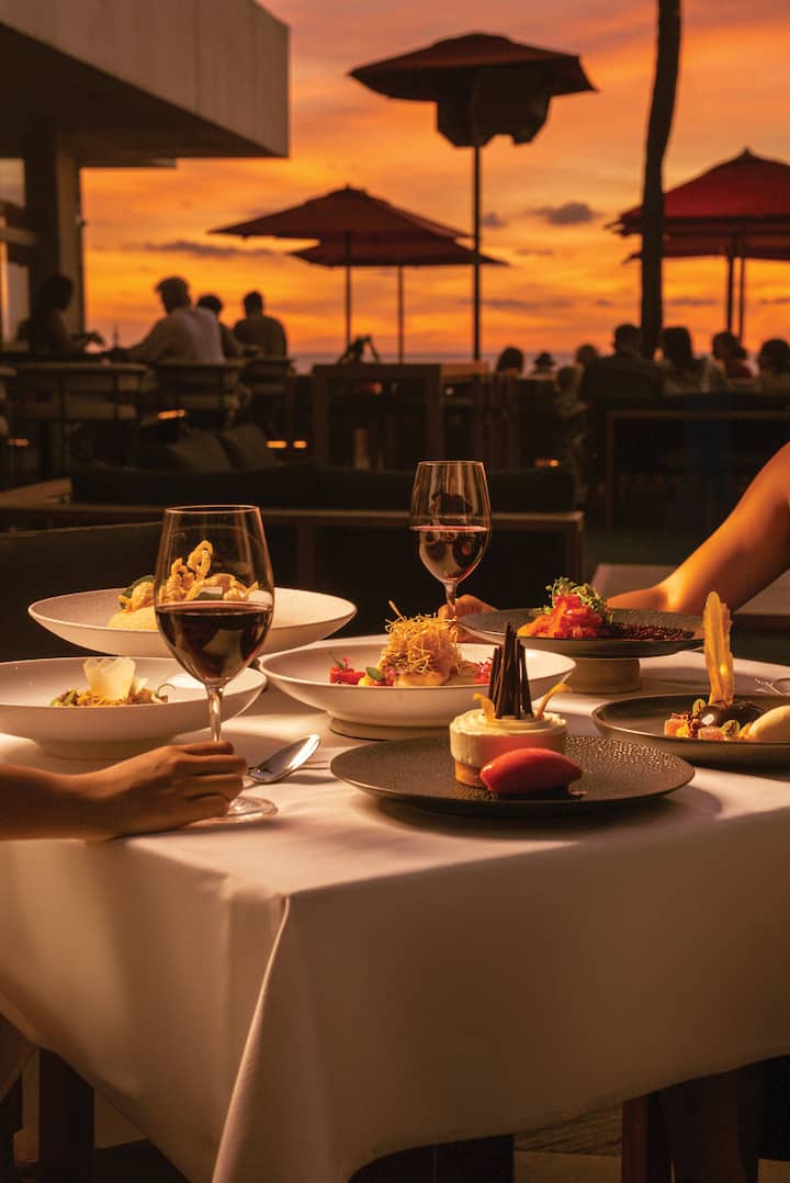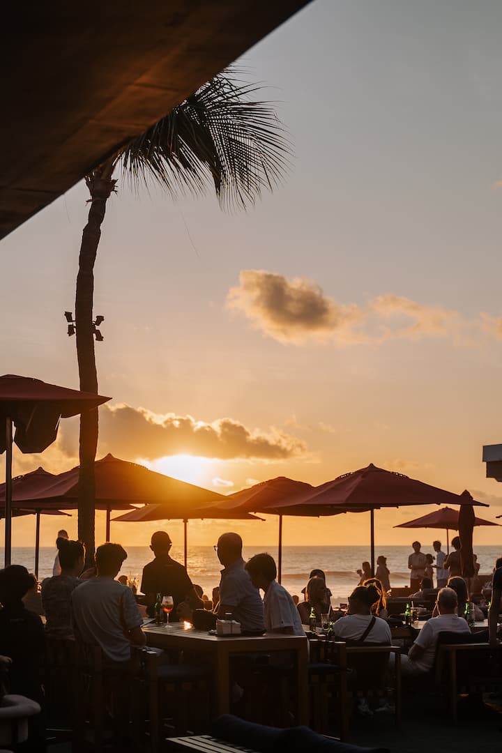 Geniet van hapjes bij zonsondergang in strandclub Ku De Ta