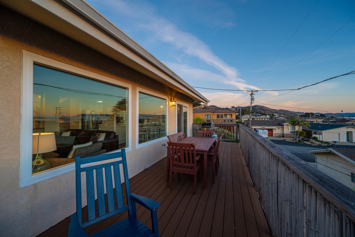 Vergunning #STR25-075 Schattig en schoon strandhuisje, 3 korte blokken naar Atascadero State Beach/Morro Strand, dakterras met panoramisch uitzicht op Morro Rock en het strand. 2 slaapkamers, elk met een eigen volledig gerenoveerde badkamer. Eenvoudige, volledig uitgeruste keuken, satelliet-tv, wifi en wasmachine/droger. Voldoende parkeergelegenheid buiten de straat. Geweldig voor stranduitjes. Dicht bij Cayucos, Cambria en de West Paso Robles wijnmakerijen.